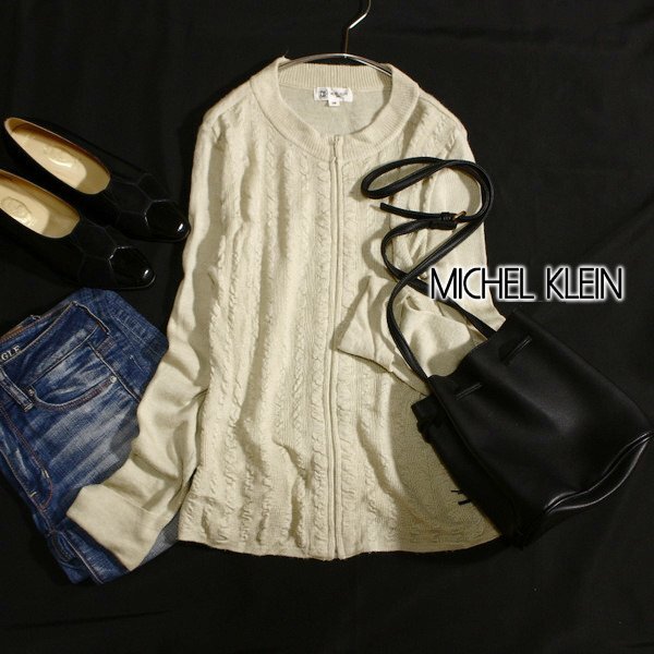 - 美品 MICHEL KLEIN ミッシェルクラン 立体ケーブル編み ジップアップ ウールニット 38号 M 秋 冬 24B11