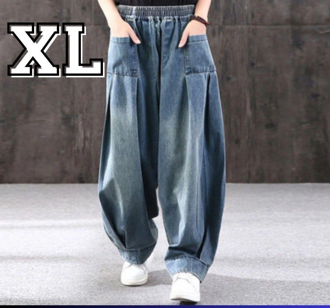 - ダボパン レディース デニム XLジーンズ サルエル ワイドパンツ 新品