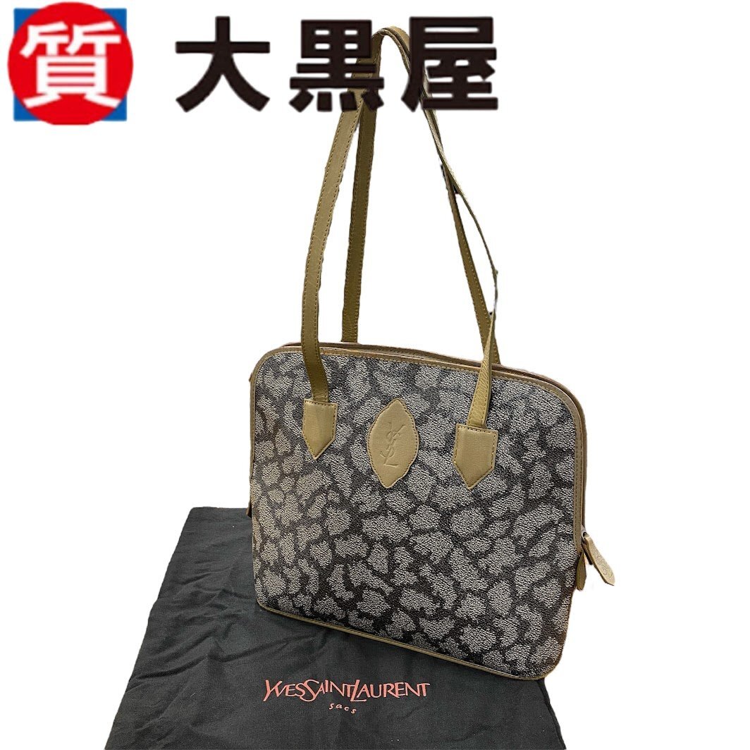 - 【大黒屋82】Yves Saint Laurent YSL イヴ・サンローラン ハンドバッグ ジラフ柄 PVC レザー ロゴ型押し レディース