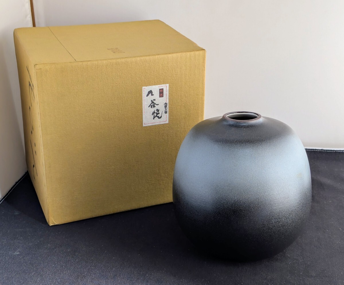 - 特選 九谷焼 花瓶 花器 花入 黒 壺 インテリア 壷 花生 置物 伝統工芸 (11086