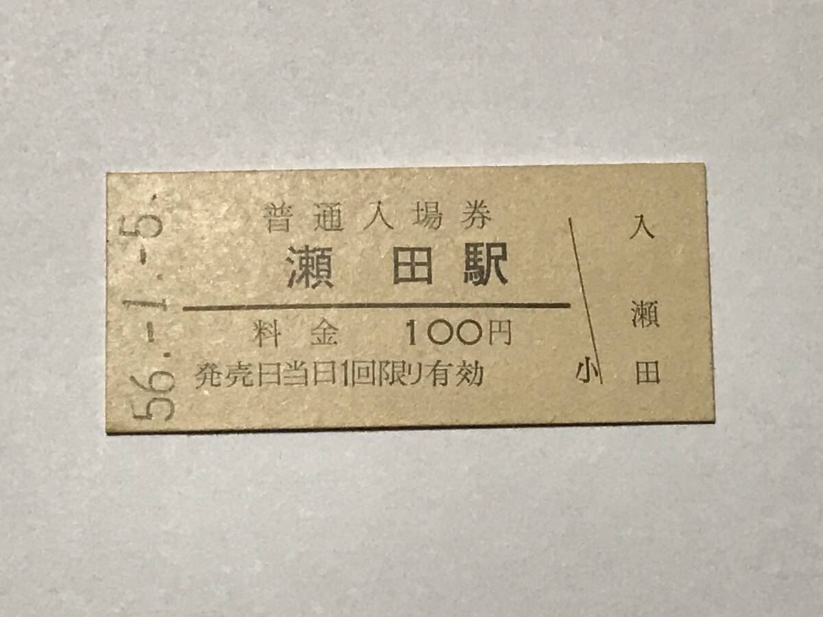 > 昔の切符 きっぷ 硬券 瀬田駅 普通入場券 100円 サイズ:約2.5×約5.8㎝ S56 HF5183 くるり 岸田繁