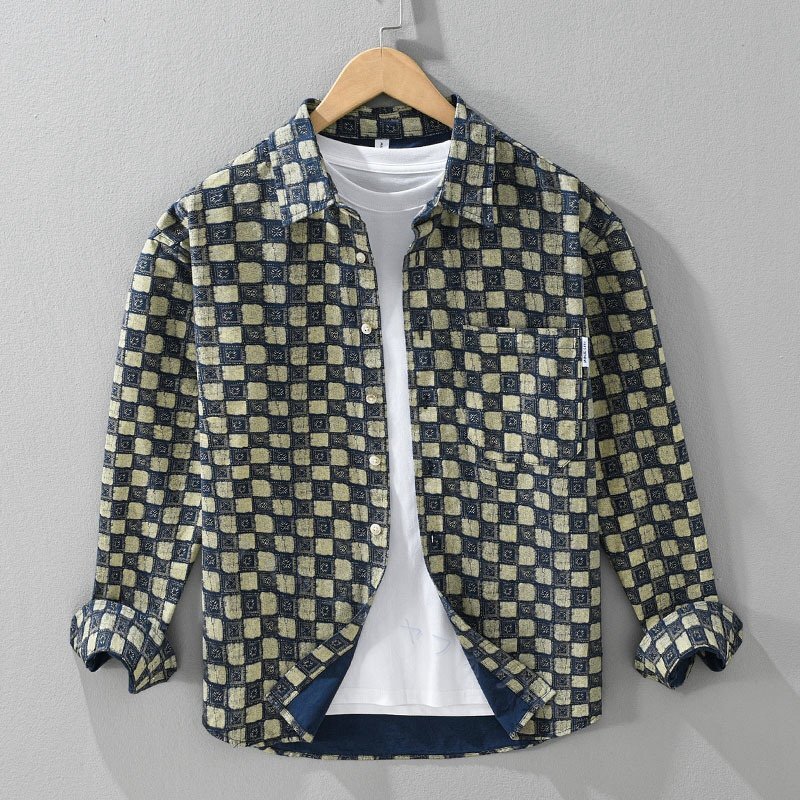 > ☆新品 シャツジャケット 春秋 長袖シャツ メンズ ワークシャツ チェックシャツ ウエスタンシャツ コットン トップス 色A M