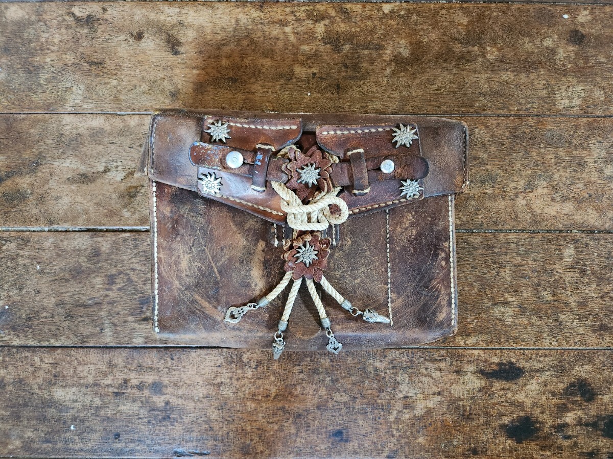 > レア ★ 2 way ビンテージ レザー ショルダー バッグ ウエスト ポーチ メタル ロープ カバン 皮 革 ナバホ ヒッピー クラフト カービング