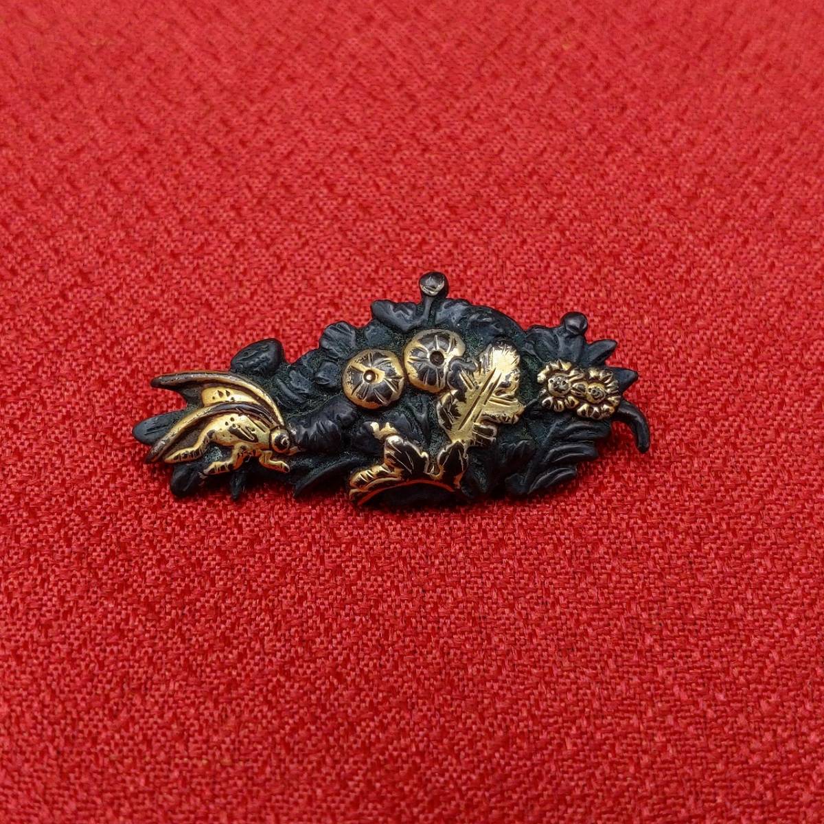 - 前金具 時代 金具 縁金 真鍮製 日本刀の部品 胴乱 煙草入れ 煙管入れ 古物 骨董 33㎜ 【3067】