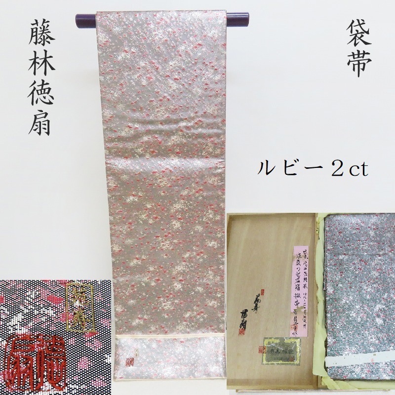> Club藤★袋帯 藤林徳扇 ルビー2ct 綴れ織 宝石箱 創業三百余年 両面袋帯 ガード済 (6frc 1611 td)