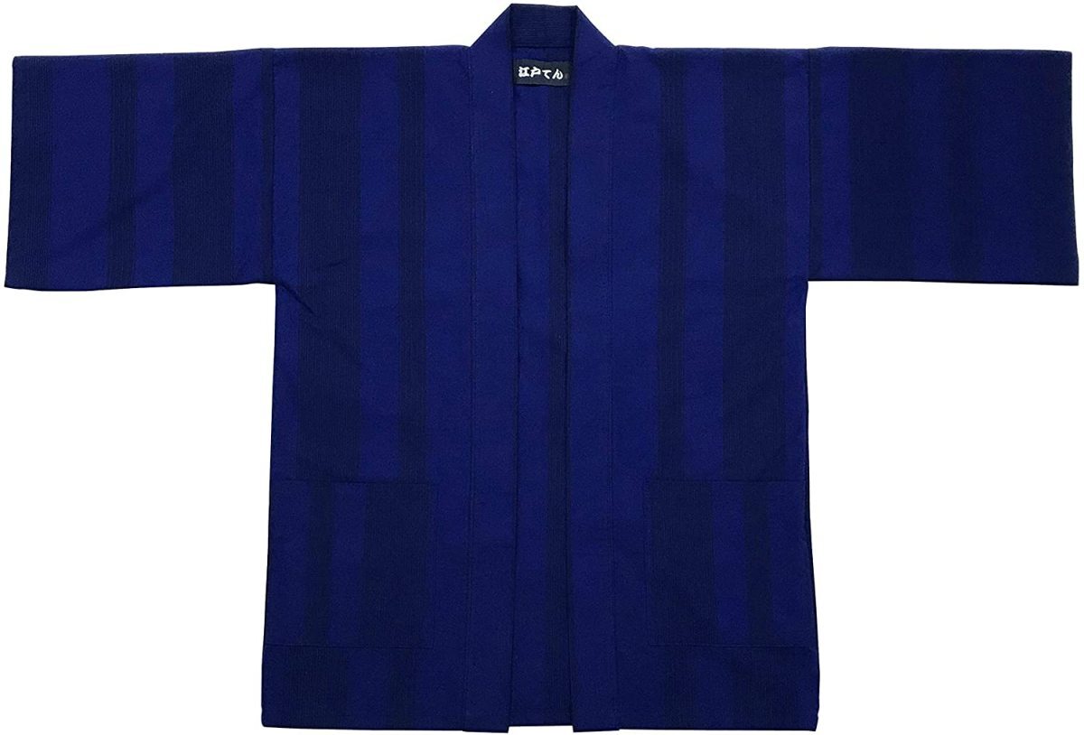 - [江戸てん]C 羽織り はっぴ 日本製スラブ生地 袢纏 法被 和服カーディガン 青縞