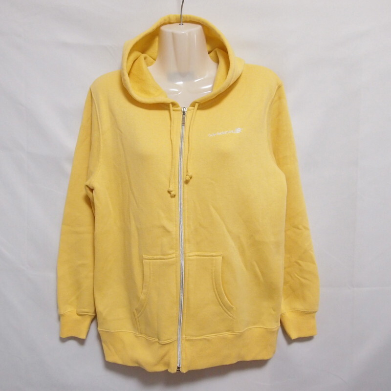 > 古着 レディースL new balance/ニューバランス 裏起毛 スウェットパーカー フルジップ フード カジュアル スポーツ イエロー L472NB081