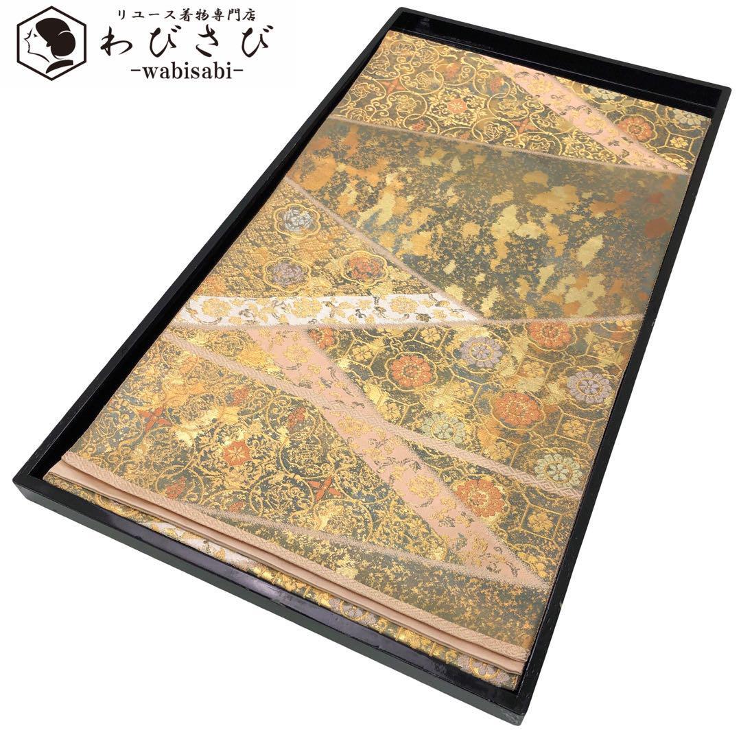 - 袋帯 西陣織 服部織物 こはく錦 手工芸 蜀江模様 金糸 金色 O-4348