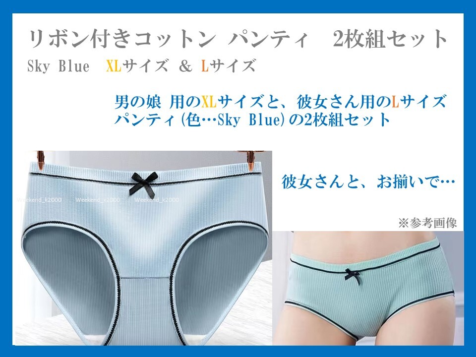 - ★リボン付きコットン パンティ 2枚組セット Sky Blue XLサイズ & Lサイズ 男の娘 彼女さんとお揃いで…
