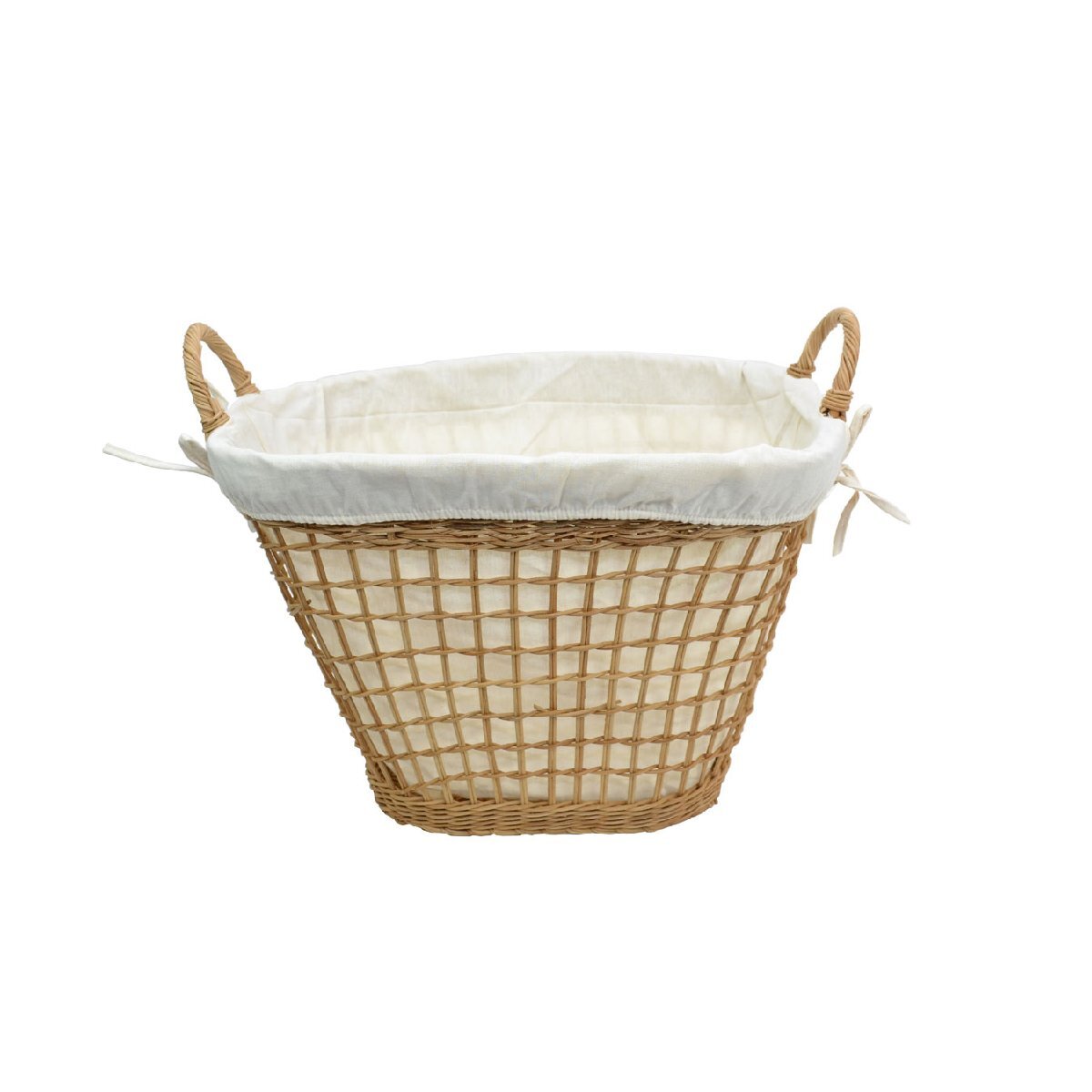 - ラタン製布付きランドリーバスケット 透かし編み 籐 脱衣かご