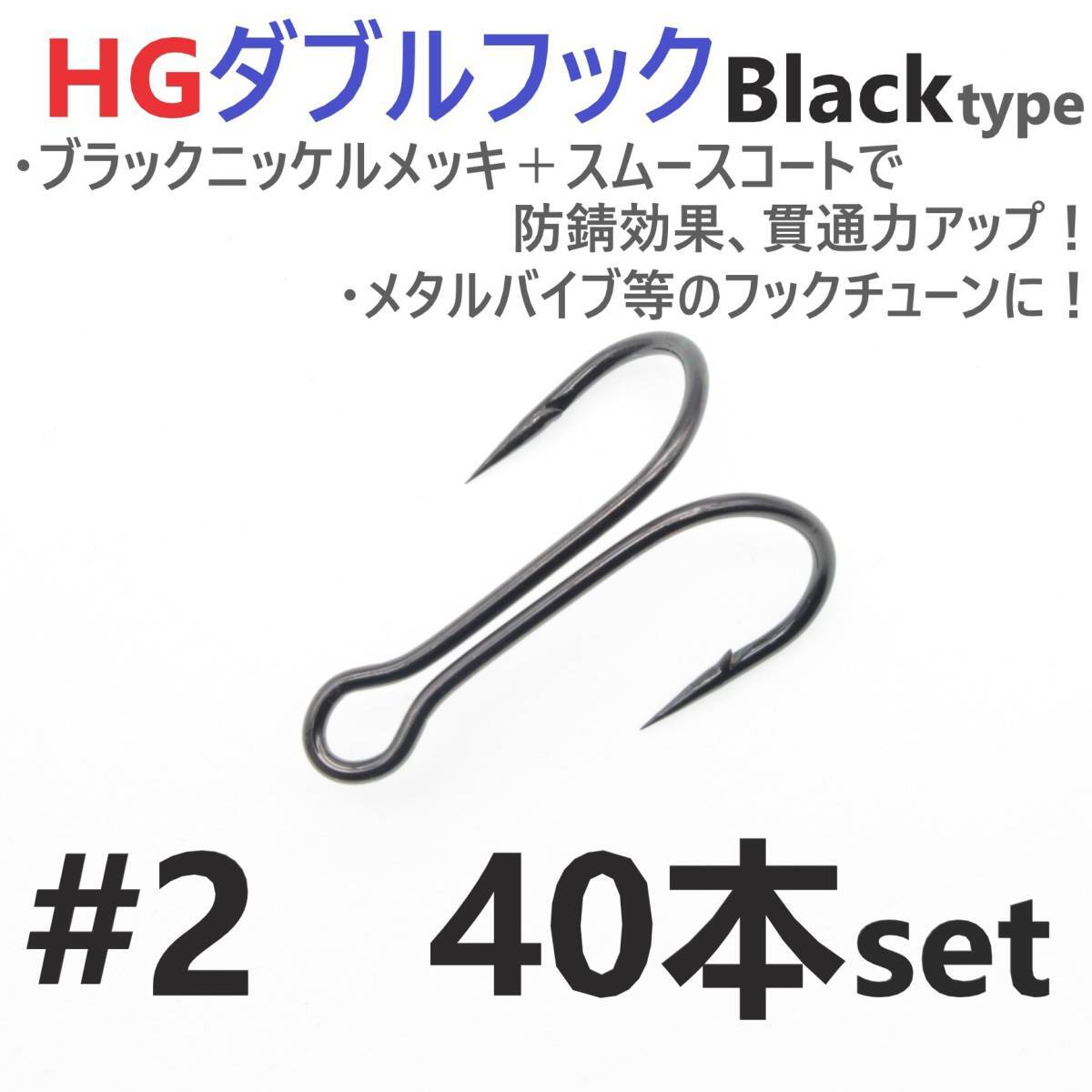 > 【送料150円】HGダブルフック ブラック #2 40本セット ハイグレードフック ソルト対応 メタルバイブ バイブレーション フックチューンに!