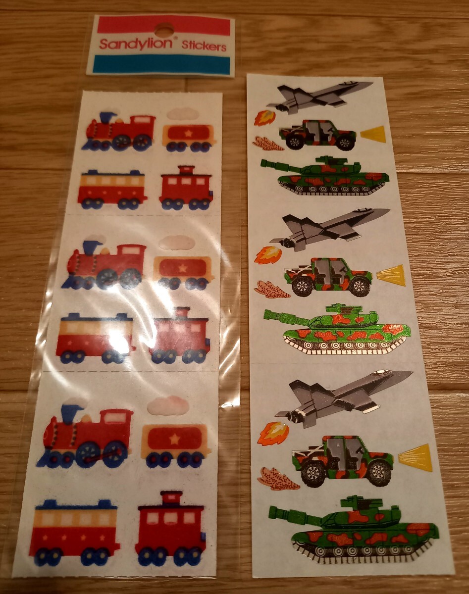 - 即決☆未使用☆平成レトロ☆車 バス 戦車 戦闘機 等 ステッカー シール 2種セット☆90年代初期☆sandylion サンディライオン☆キラキラ☆