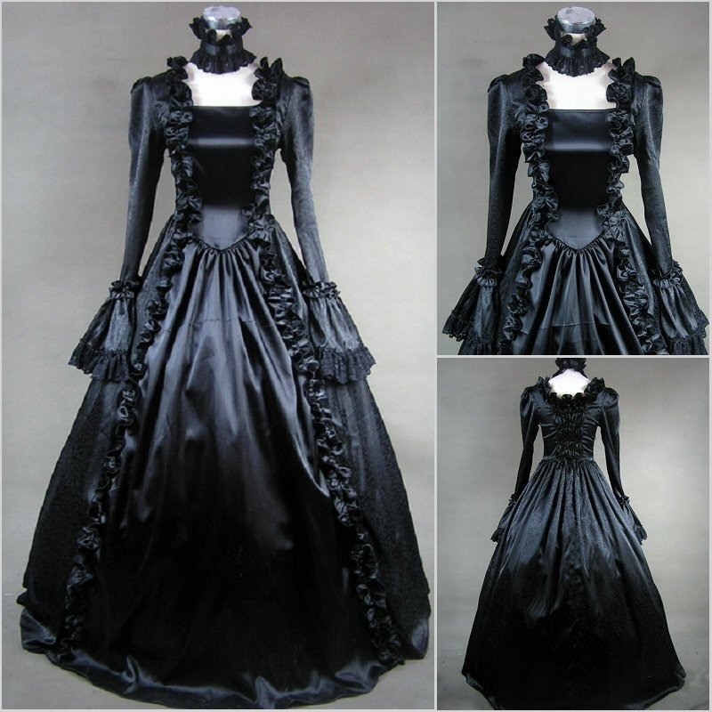 - ヴィンテージ ロリータ ドレス 宮殿 レース フレア スリーブ ロング カワイイ女の子 ゴシック コスプレ ZCL816