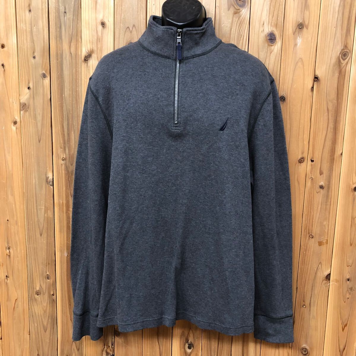 > NAUTICA*ノーティカ メンズXL 長袖 ハーフジップ リブ トップス ハイネック ロンT ワンポイント刺繍 アメカジ USA古着