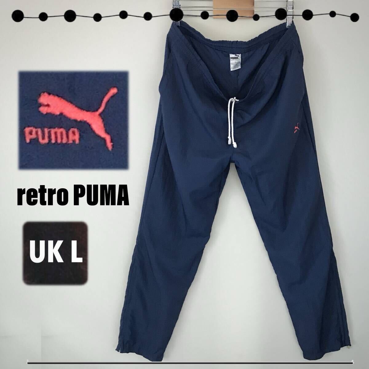 - VINTAGE PUMA ビンテージ プーマ★ウーブンナイロン★トラックパンツ★レトロな旧ロゴ刺繍★UKメンズL 2310O057
