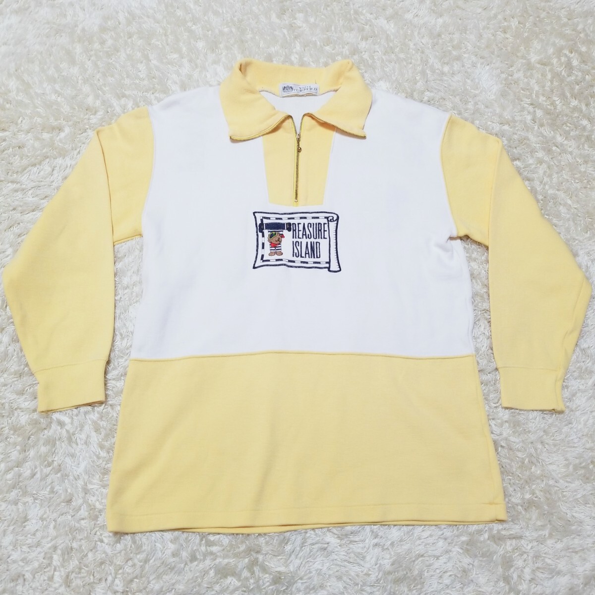 - Y938 WHITE ITARIYARD ホワイトイタリヤード ハーフジップ 長袖シャツ カットソー イエロー×ホワイト メンズM相当 ユニセックス