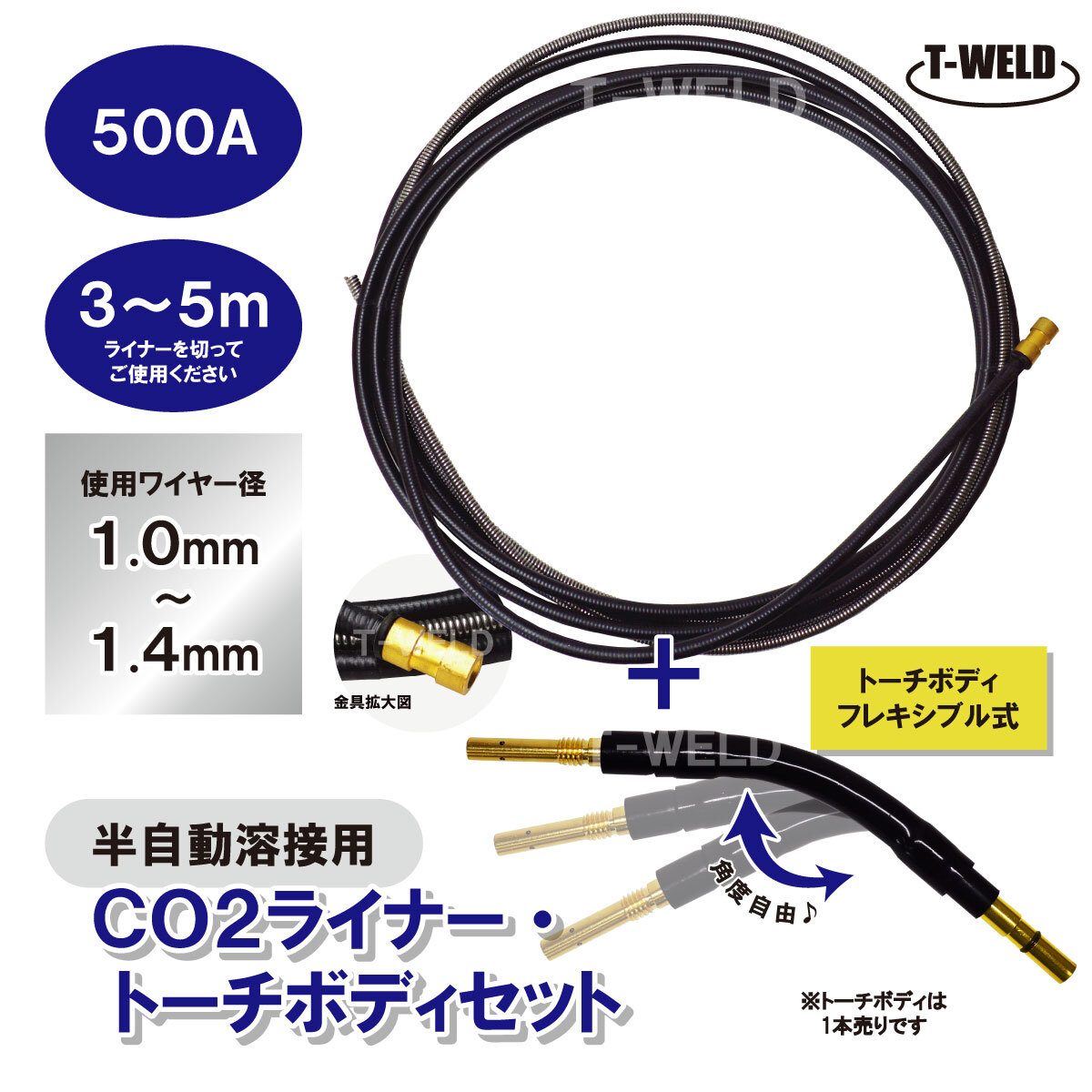 - 半自動溶接用 CO2 ライナー・トーチボディ セット ダイヘン 適合 500A 3m~5m