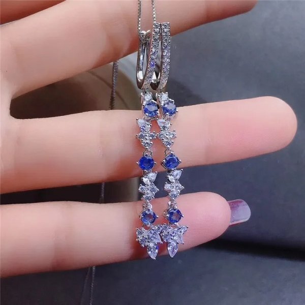- 【証明書付き】女性用ナチュラルサファイアピアス、925スターリングシルバージュエリー、最初の入札者様は開始価格で購入可能