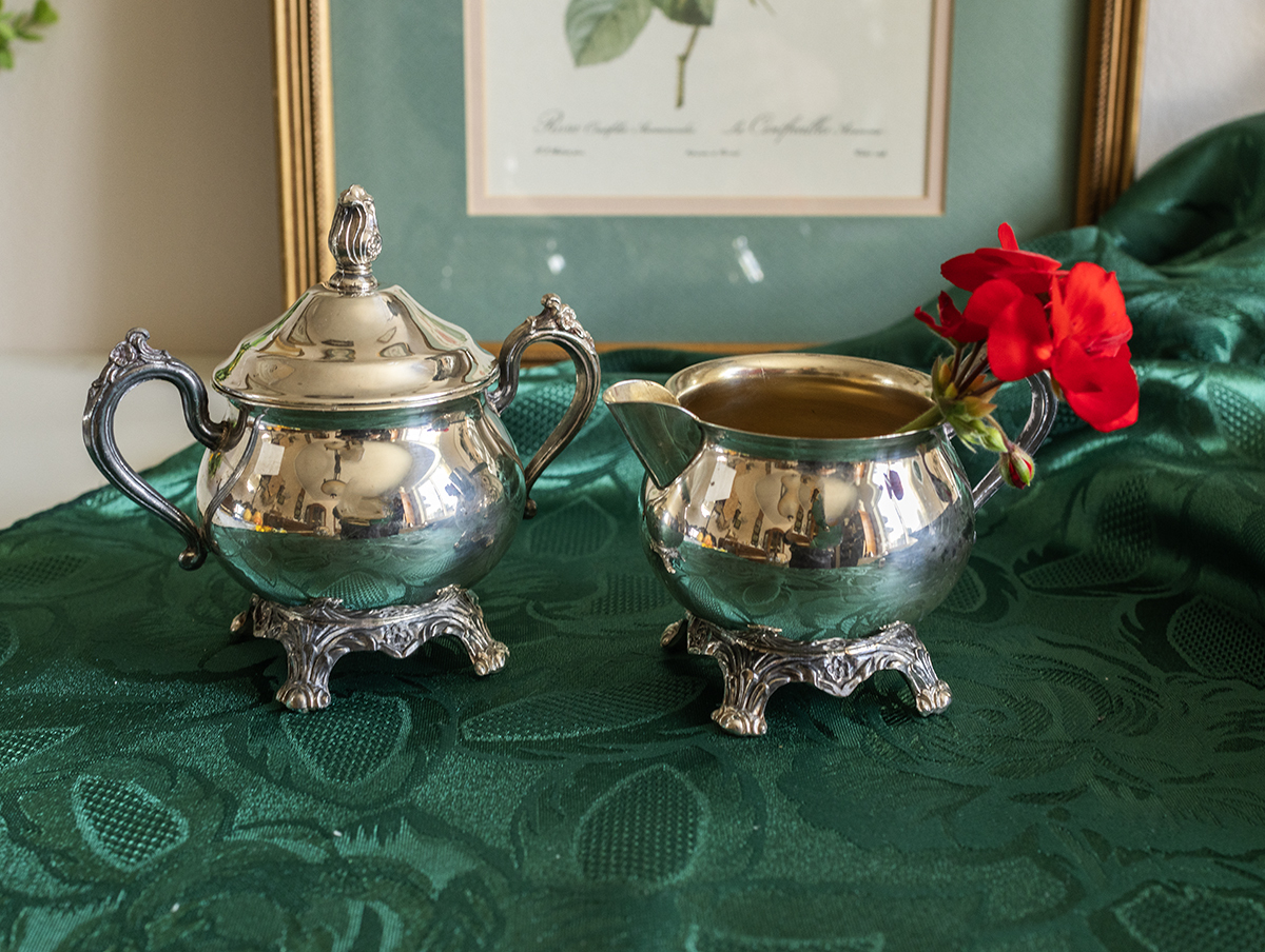 > アンティーク シュガー&クリーム 2点セット シルバー シュガーポット FB Roger クリーマー ジャグ 銀 輸入 什器 アンティーク ビンテージ