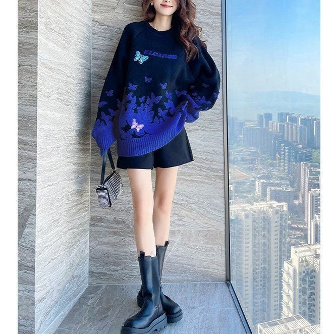 > ☆新品Fサイズ 秋冬 オシャレ ラウンドネック 暖かい ニットセーター ふんわり袖 20304050代 着痩せ ニットトップス