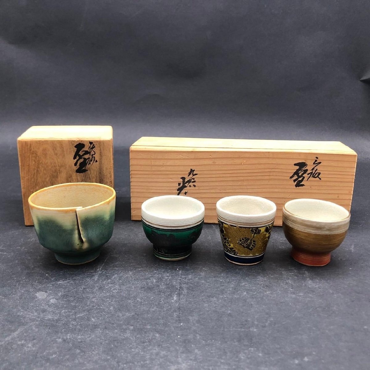 - SW1023-14-4 九谷 まとめ 盃 光仙 お猪口 酒器 共箱 和食器 陶器 最大口径6高5㎝ ぐいみ 工芸品 60サイズ