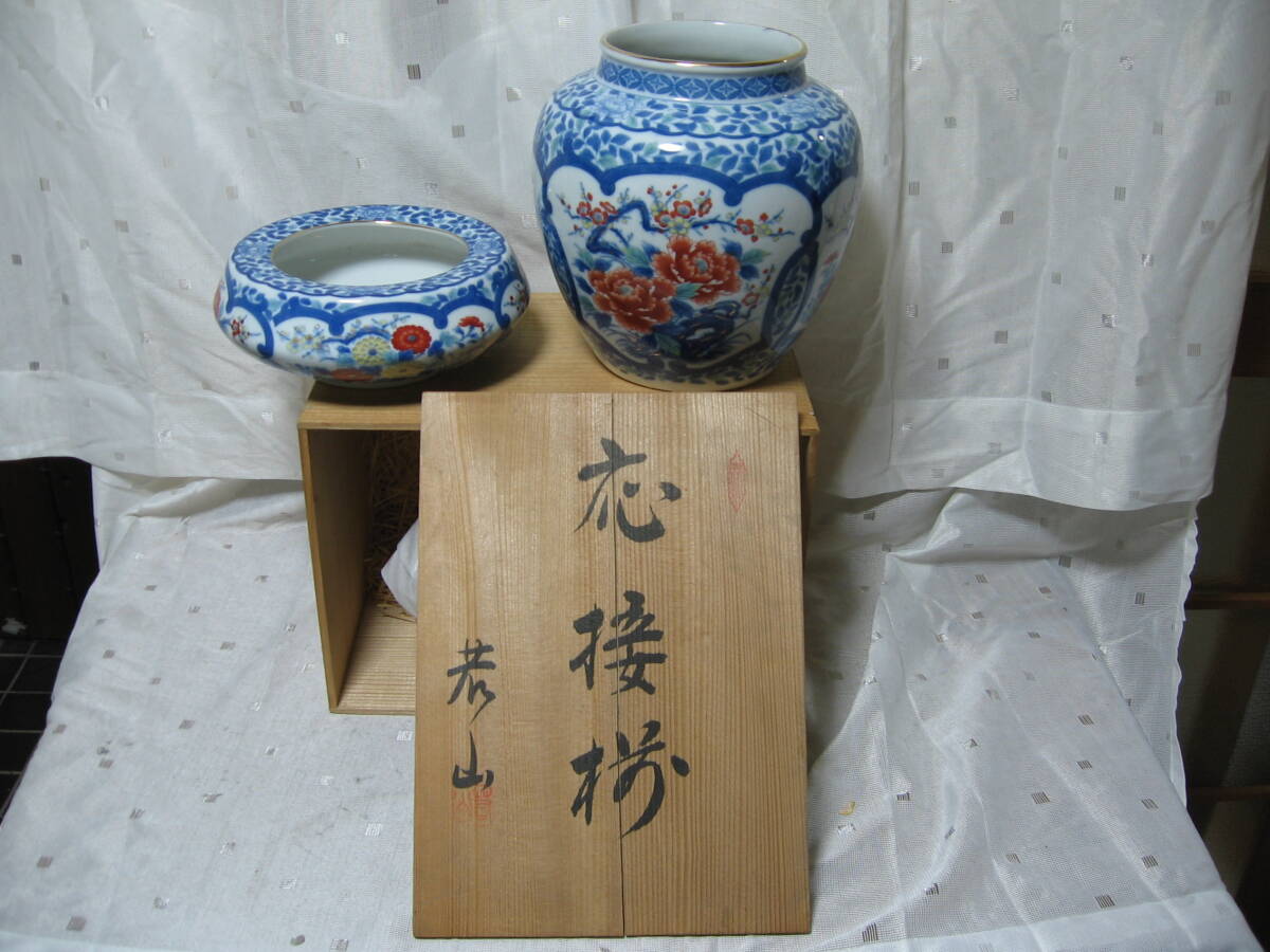 - 花瓶☆灰皿☆応接揃☆銘 若山☆木箱(共箱)☆未使用品に近い