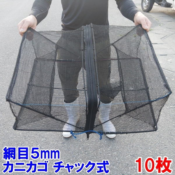 - 網目5mm角型タイプ 10枚 カニカゴ 蟹かご 蟹カゴもんどり仕掛け 漁具 穴子仕掛け 蟹仕掛け 魚捕り