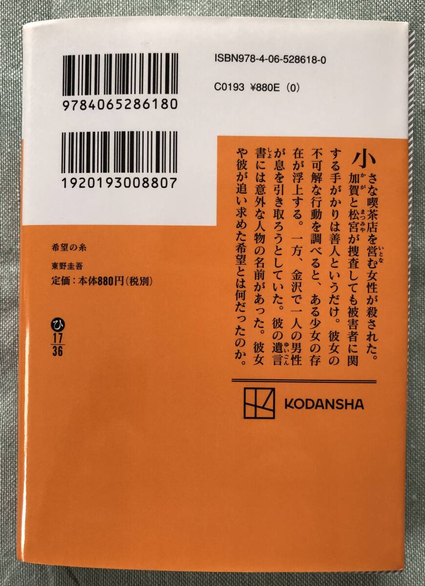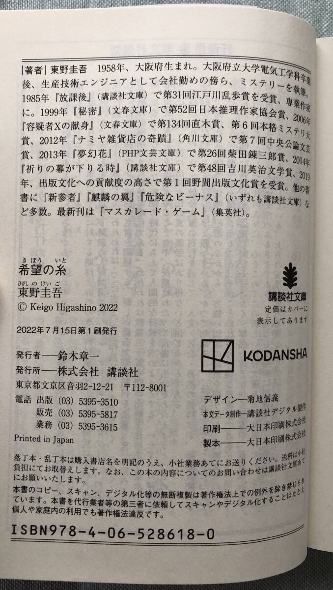 - ★☆ 文庫本【希望の糸 東野 圭吾(著)】2022年7月 第1刷発行 ☆★