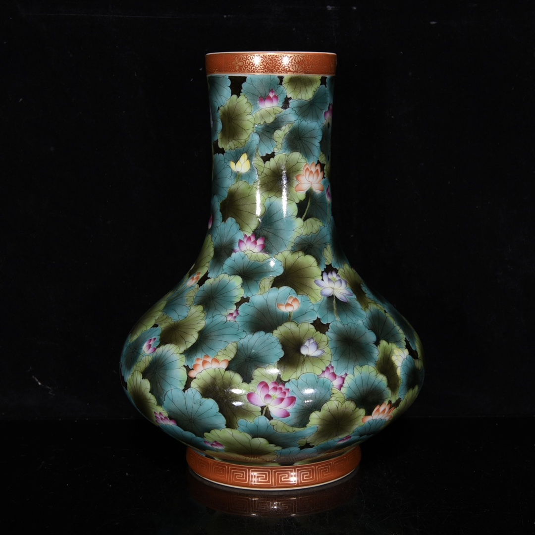 - ◆旧家蔵出◆古美術 中国古玩 大清雍正年製款 粉彩 描金 荷花紋賞瓶 古賞物 骨董 時代物 A06