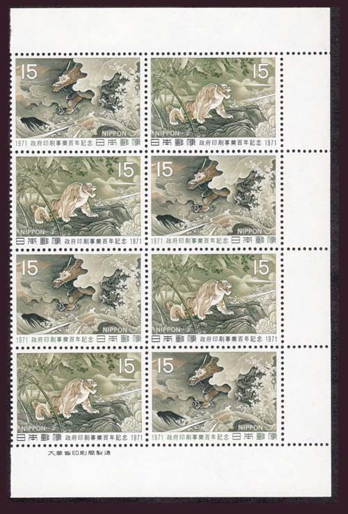 - 余白付き・2種連刷☆銘柄付き◆政府印刷事業百年記念1971年☆記念切手15円【未使用】竜・虎