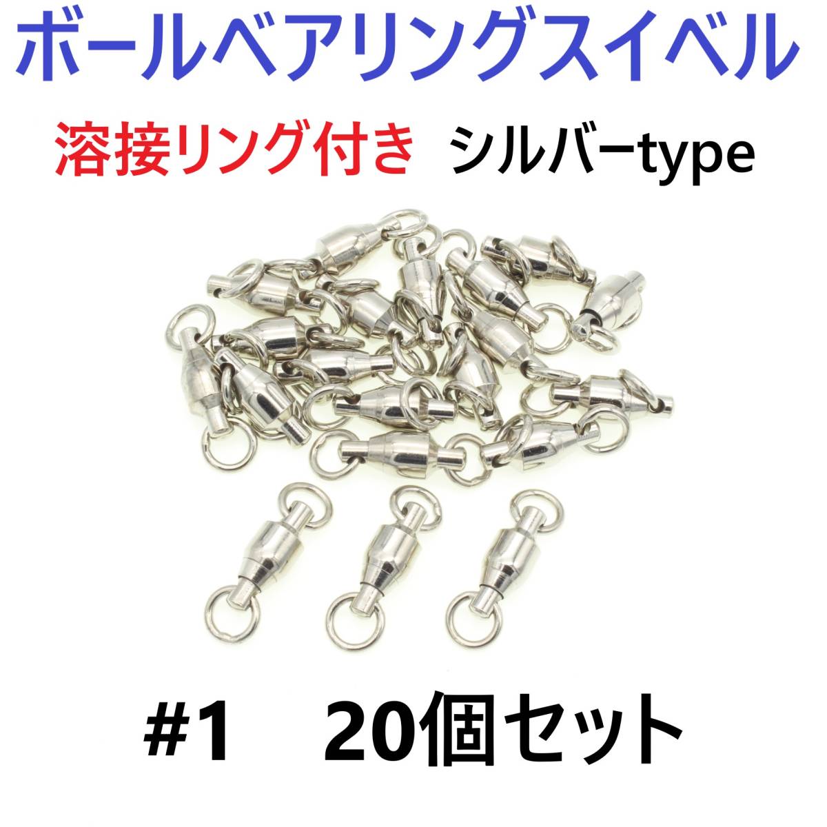 > 【送料無料】ボールベアリング スイベル #1 20個セット 溶接リング付き シルバータイプ ジギング等に!
