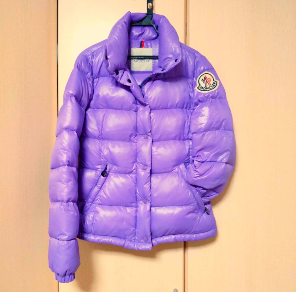 - 即決 モンクレール クレア MONCLER CLAIRE ダウンジャケット デカロゴ/デカワッペン パープル薄紫 OO/S~M位 送料無料