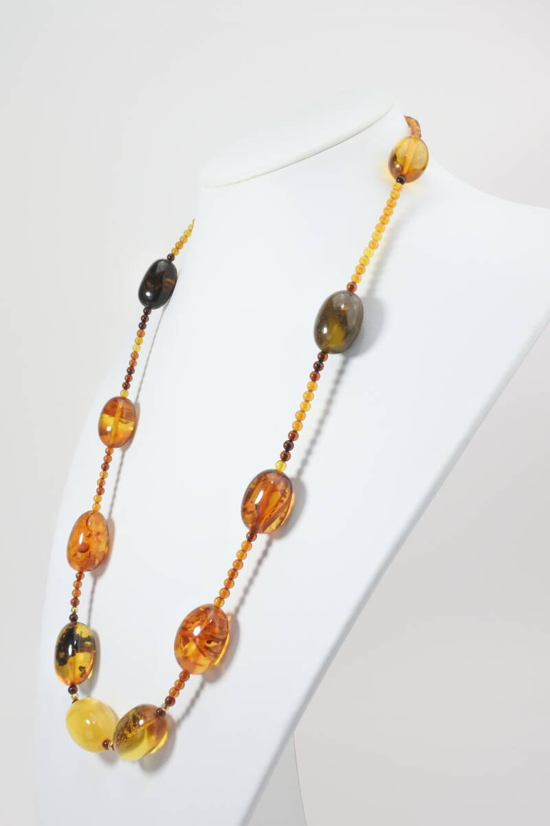 - 日本製* K18 天然琥珀 ネックレス長さ67㎝ 39g 最大珠 (径16.5mm 長さ24mm) 未使用保管品 お買得品