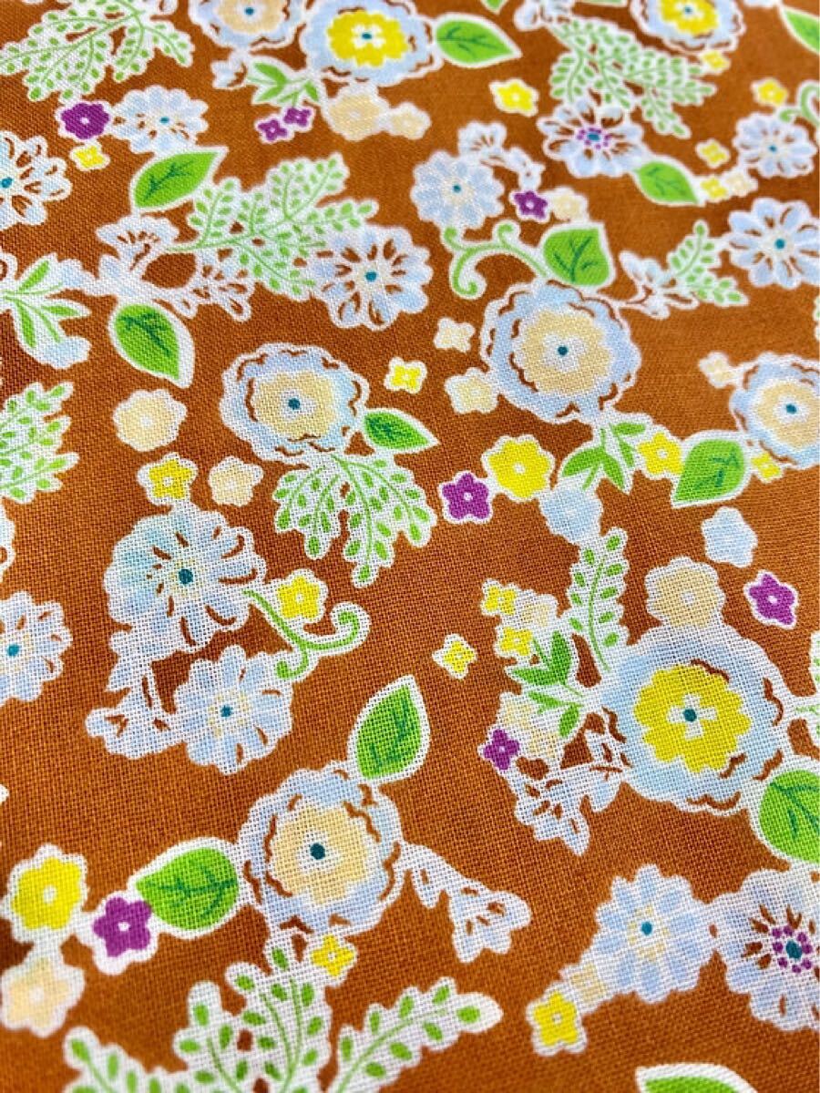 - ブラウン 小花柄生地 水色と黄色のお花など