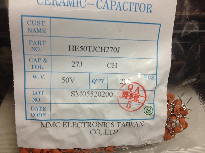 - 円板型セラミックコンデンサ HE50TJCH270J CH特性 50V 27pF 10個