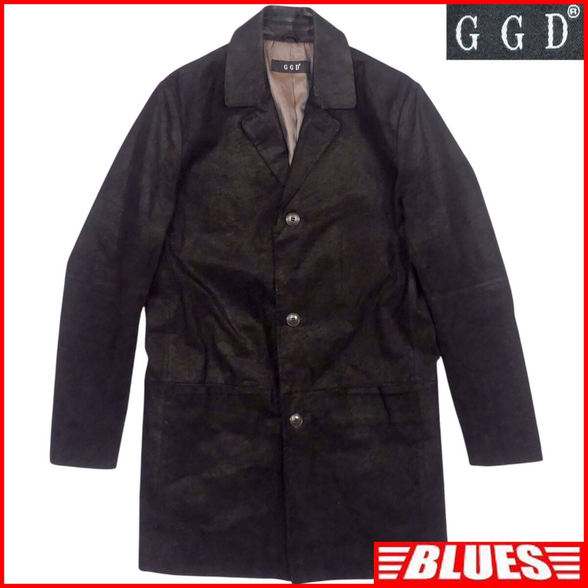 - 即決★GGD★メンズ L レザーテーラードジャケット ジージーディー 黒 本革 ブレザー 本皮 スーツ 革ジャン 背広