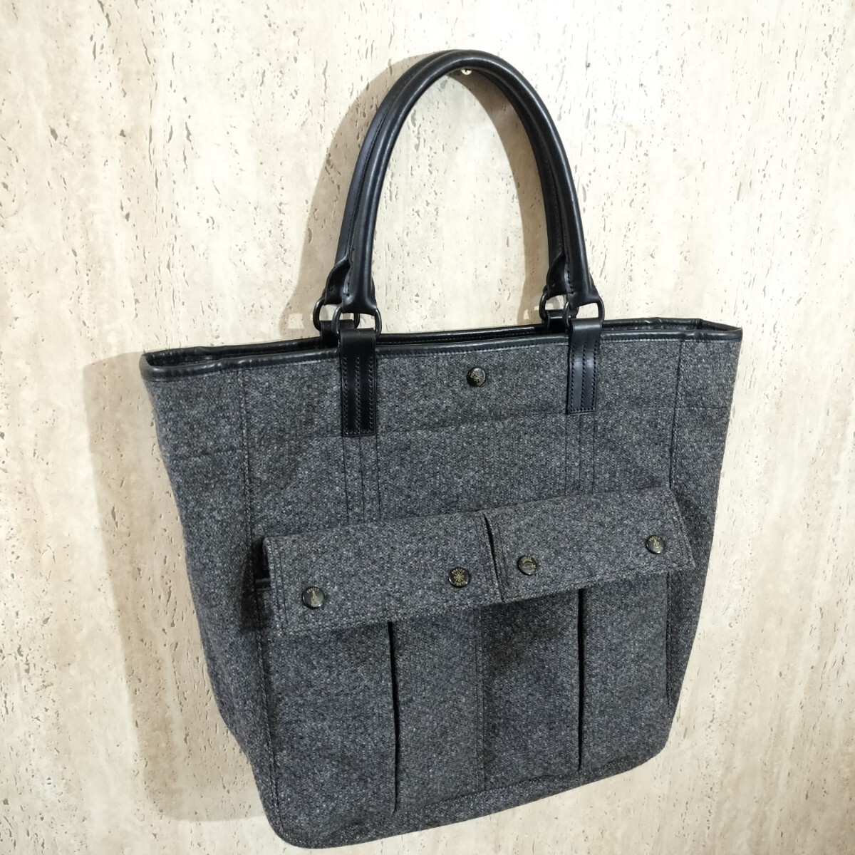 > 限定モデル PORTER 70th Anniversary ポーターウール トートバッグ グレー ブラック ツイード レザー 吉田カバン