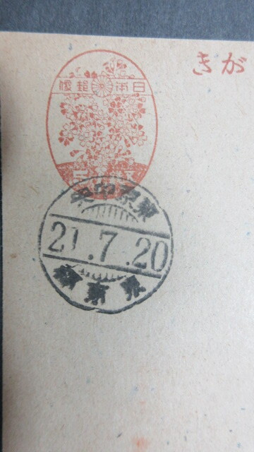 - 【初日印】桜5銭はがき 21.7.20 (裁断ミス/稀少)