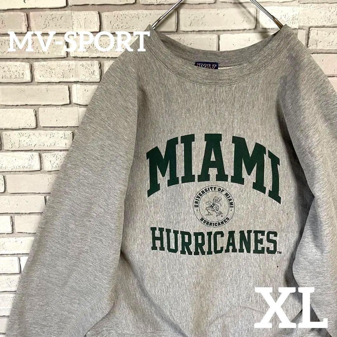 > MV SPORT スウェットトレナー フットボール メンズXLサイズ グレー USA アメリカ マイアミ フットボール PRO-WEAVE 古着