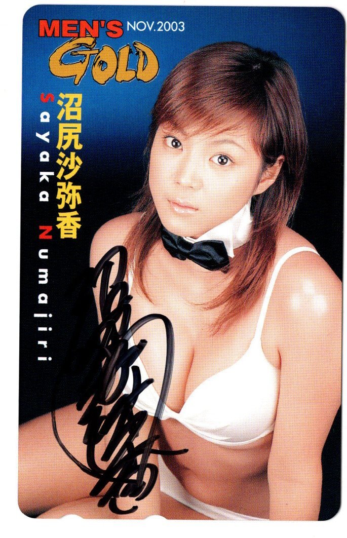 - 【レア】沼尻沙弥香 直筆サイン入りテレカ メンズゴールド 白ビキニ