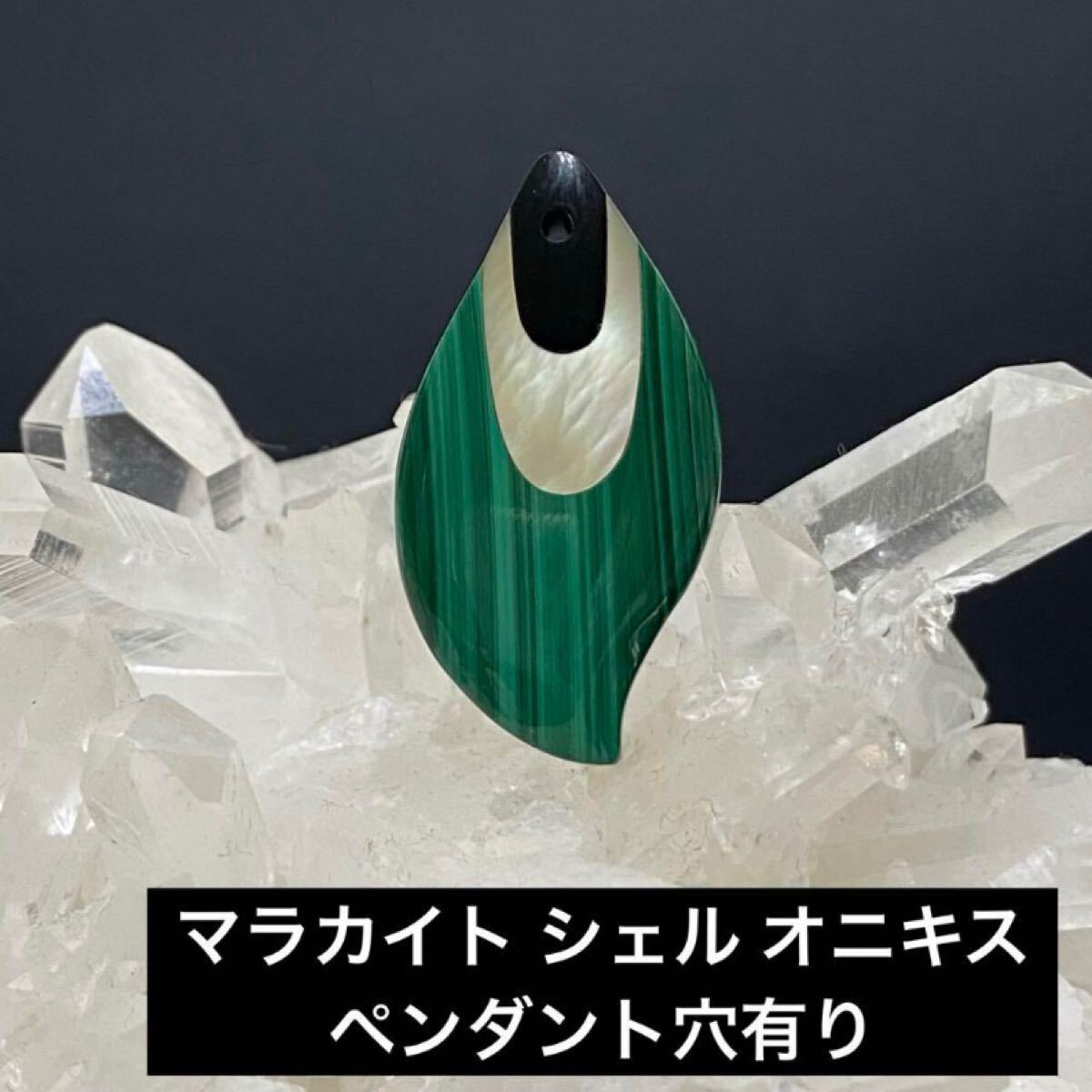 - C312 マラカイト シェル オニキス ペンダント穴有り