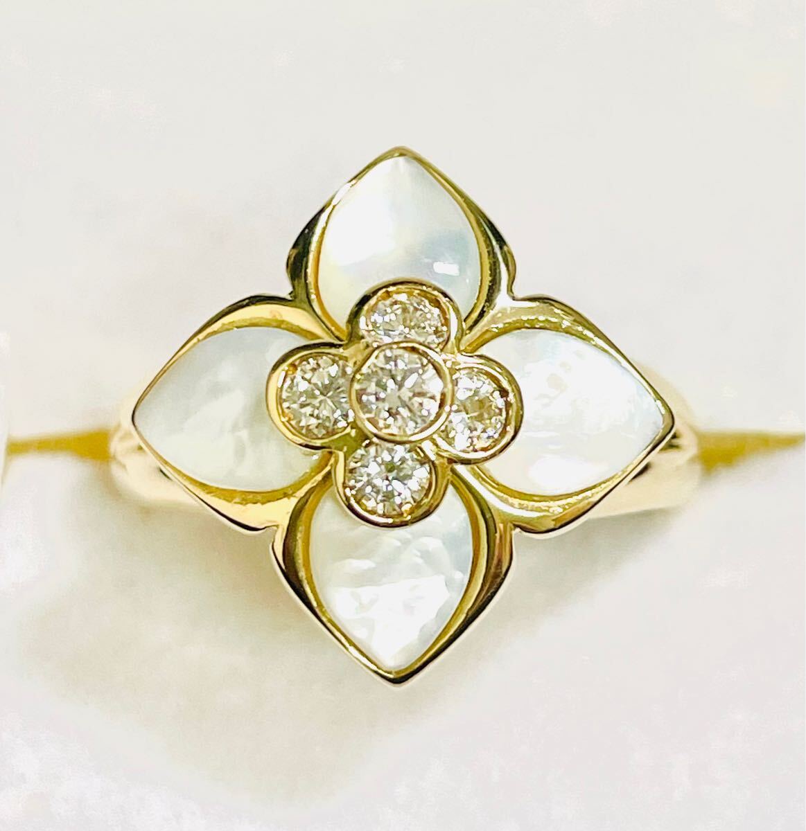 - ☆K18 シェル&ダイヤ花柄リング 14号☆