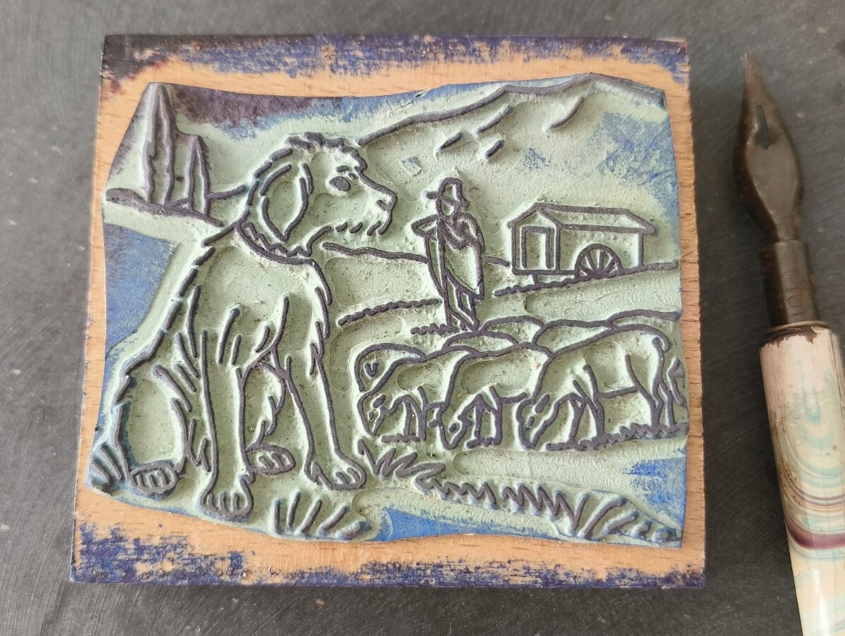 - シープドッグ 牧羊犬 牧畜犬 種類 羊飼い 犬 羊 牧場 フランス アンティーク スタンプ ヴィンテージ ハンコ アニマル レトロ