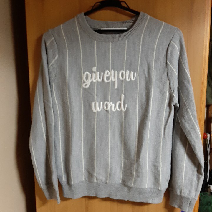 - *THE EMPORIUM*グレーにストライプにロゴ刺繍入り薄手ニット*