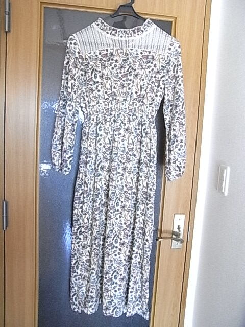 - 一度洗濯☆フリーサイズ 女性用花柄ワンピース 長袖 ロング丈 ポリエステル100%