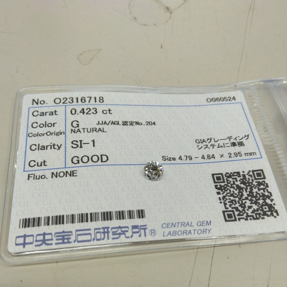 - B4450 ダイヤモンドルース 0.423ct 中央宝石研究所ソーティング済み