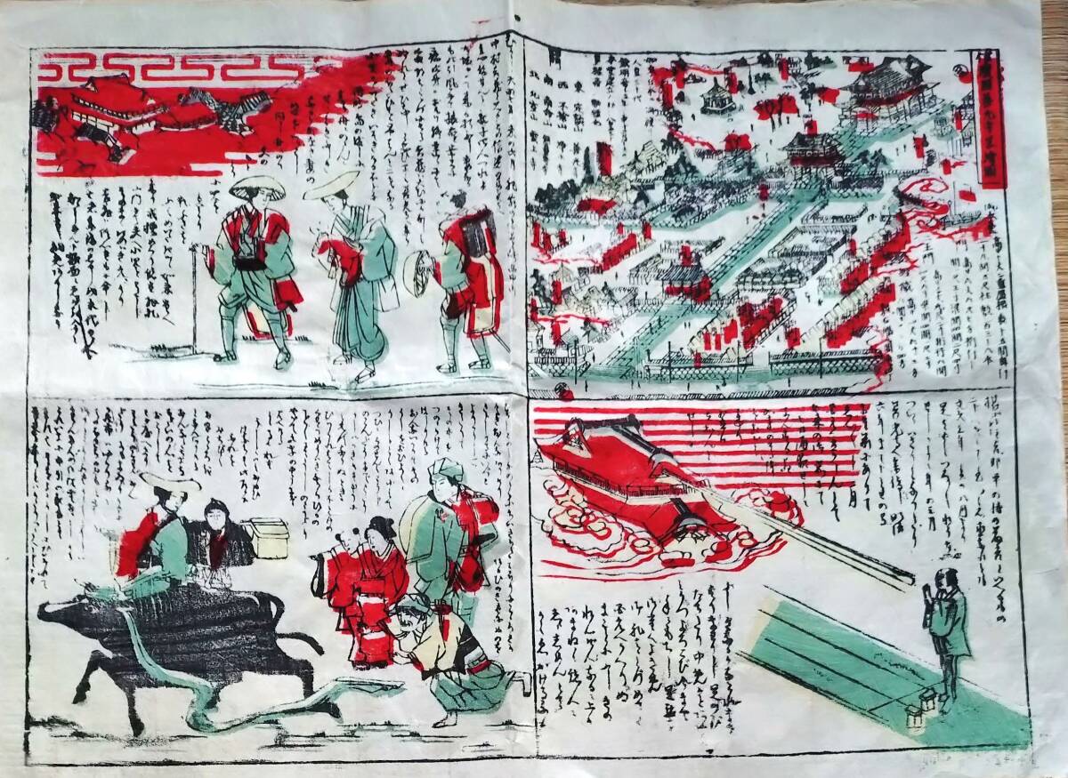 - f24112254〇彩色木版画 信濃国善光寺略絵図 大正時代〇和本古書古文書