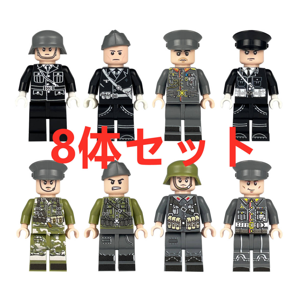 - ★新作★【レゴ互換】ミニフィグ WW2ドイツ軍兵士人形フィギュアCセット8体