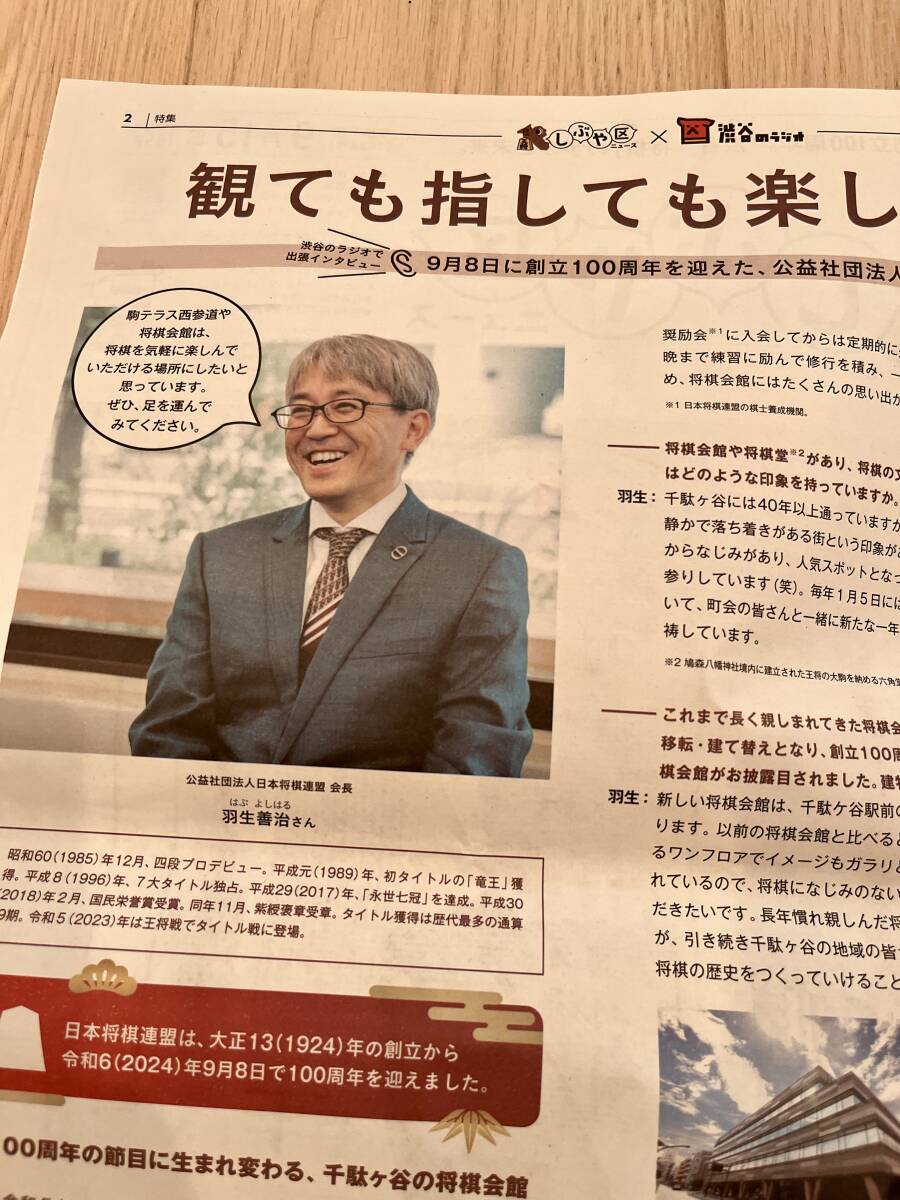 - 羽生善治 渋谷区広報誌 渋谷区ニュース (連盟100周年、千駄ヶ谷将棋会館移転など)