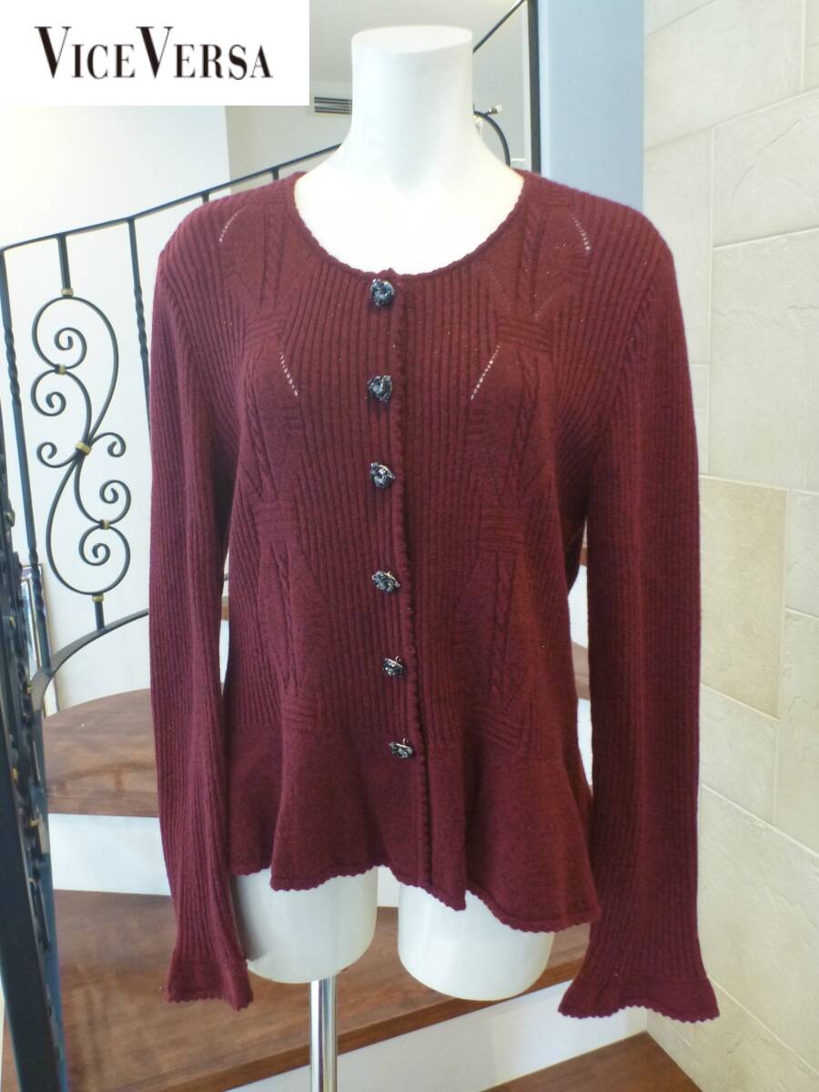 - 2.5万 超美品 VICE VERSA バイスバーサ★ボルドー ビジューボタン カーディガン 40 L相当